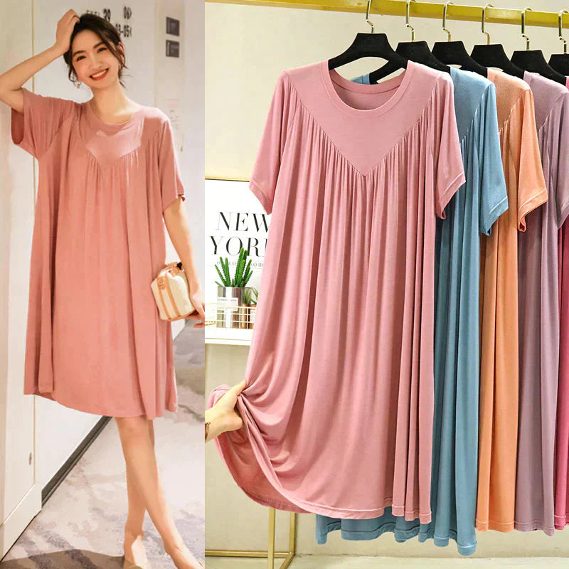 Superblødt behageligt kortærmet løst pyjamaskjole